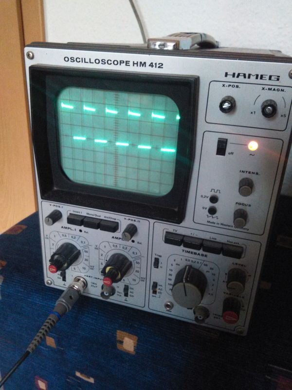 PWM Kurve auf Hameg Oszi 5V/Div-0,5ms/Div d.h. 12V/1kHz